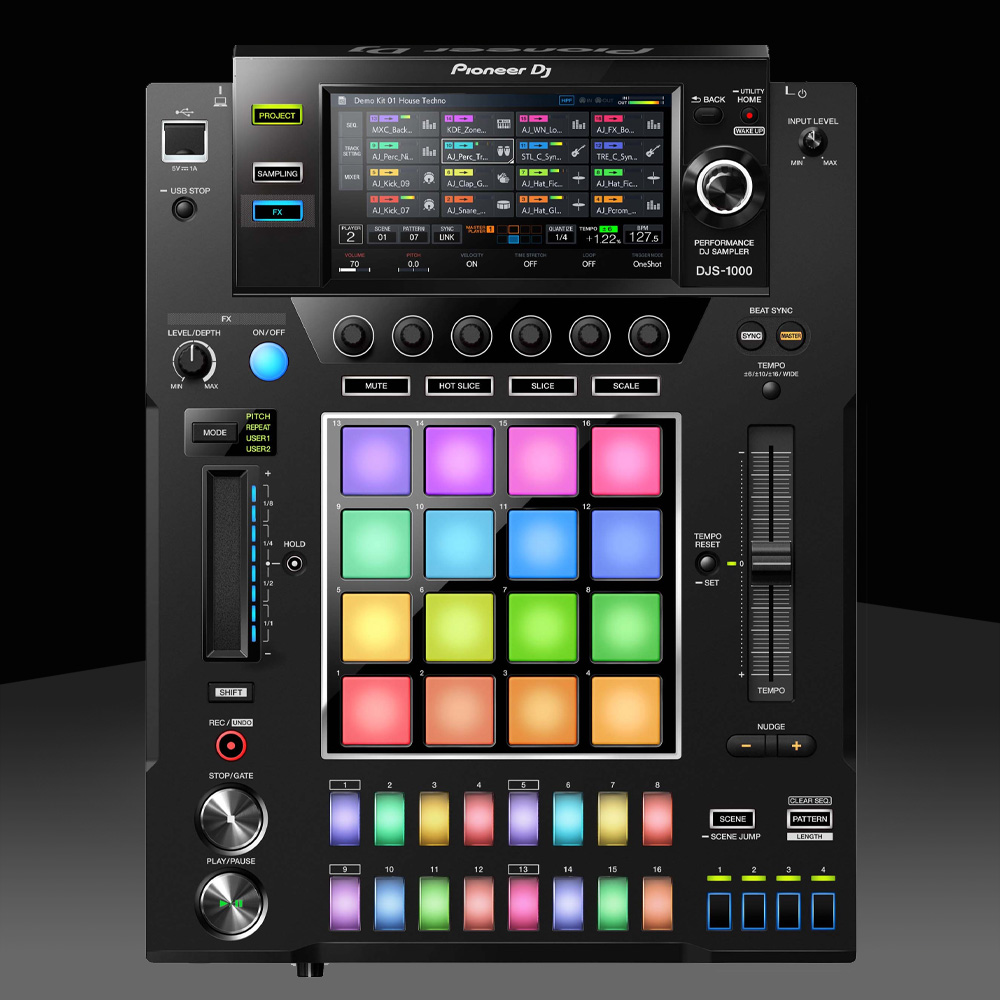 Mit einem 7-Zoll Vollfarb-Touchscreendisplay, 16 Multicolor-Step-Eingabetasten, mehrfarbigen Performance-Pads, zahlreichen Ein- und Ausgängen, Live-Sampling und vielen weiteren Performance-Funktionen des DJS-1000 bringst du deine Sets einen riesigen Schritt weiter.